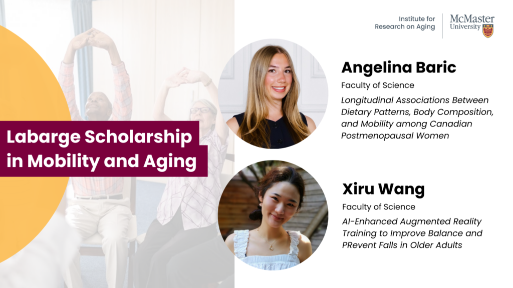 The 2026 Labarge Scholarships in Mobility in Aging have been awarded to Xiru Wang and Angelina Baric, two PhD students working to advance mobility research in the field of aging. These awards supports emerging scholars who are developing interdisciplinary approaches to help older adults maintain independence and quality of life.